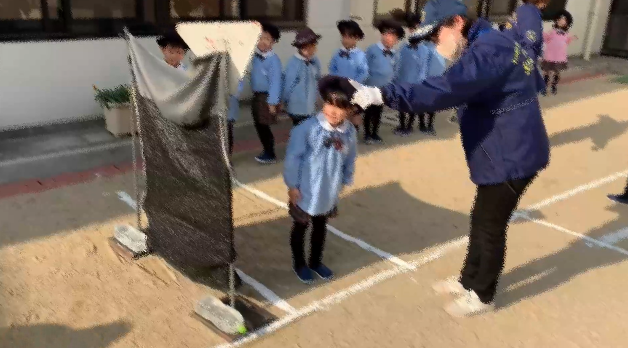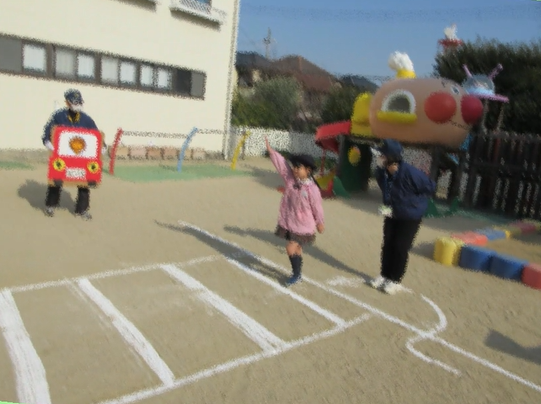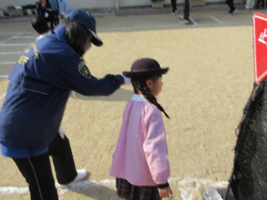 小学生になると学校まで歩いて行くので、おまわりさん達が幼稚園に来て
